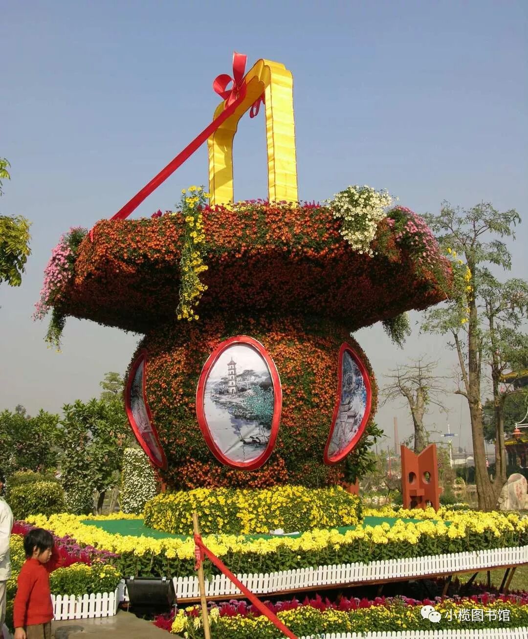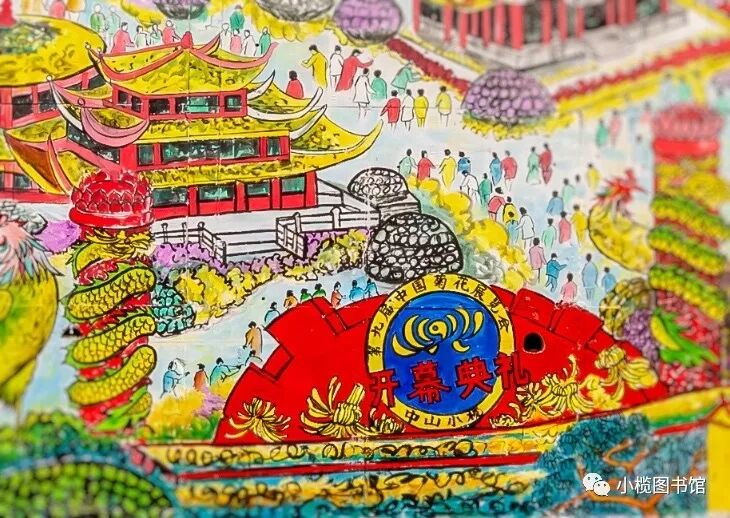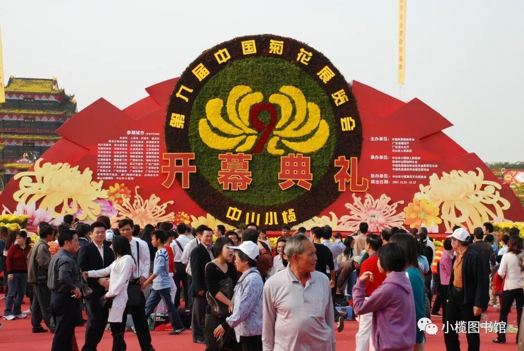 画卷由右至左,首先为1934年甲戌菊花大会,花桥画舫,戏棚蘸坛,水陆辉影,彩灯景棚,琳琅满目,河涌上飘色船,音乐艇,浩浩荡荡,鱼贯而行,锣鼓喧天,近景布满了南方特色建筑——锅耳屋,远处是以桑基鱼塘为特色的鱼米之乡景象。 1934 花塔造景 1934 立菊展场 1979 1979 1994 升平路 1994 民安路 1994 名菊荟萃 进入21世纪,2004年甲申菊花文化艺术欣赏会中45圈6211朵菊花的一棵单株立菊和伸展长度168米的菊花巨龙均创造了上海大世界基尼斯纪录,高达23.26米的菊艺裱扎造景“赏菊楼”及单株嫁接247个不同品种的大立菊均被列入英国吉尼斯世界纪录大全。菊会期间,国家文化部授予小榄“中国民间艺术(菊花文化)之乡”称号。 2001 世纪子母灯 2004 江滨公园全景 2004 江滨公园 2004 赏菊楼 2004 迎菊亭 2004 江滨公园 2004 金菊殿 2004 罗马柱 菊花广场 2004 大菊花篮 2004 九龙入洞 2007第九届中国(中山小榄)菊花展览会举行,展会以“菊城秋韵·华夏情”为主题。全国有25个省(市)、自治区和港澳台地区以及日本、韩国、马来西亚等国共44个城市、123家单位参展。展区分新地园区、江滨公园、龙山公园、人民公园4大展场,展场面积30万平方米,展出菊花46万盆,品种近1800个。513个品种13圈的嫁接菊和仿滕王阁菊花楼造景列入世界吉尼斯纪录。本届菊展会参观人数达到300万人次。 2007 开幕典礼 2007 菊花楼 2007 菊花龙舟 2007 滕王阁 2007 菊花造景 2007 拼盆大立菊 2007 大型造景