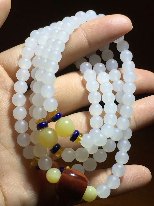砗磲盘玩,与其他手串不同,砗磲盘玩选未抛光,只进行打沙的珠子进行盘玩,因为砗磲与木头不同,它的密度高,过度抛光虽然好看,但不长久,因为珠子表面的毛孔被打摩掉了,很难盘玩,但只打沙未抛光的就不同了,也叫亚光,砗磲表面毛孔很多,很容易上手,变润,重要的是砗磲盘玩讲究温度,湿度,油手,汉手最好,砗磲喜油,与木手串不同,想要盘玩一串上等的砗磲手串,是需要耐性的,而且要选择一串好品质的珠子,才能盘玩出来。