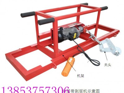 特点:用于多层输送带的剥层,由卷扬机.机械部分和导向系统组成.卷扬机包括电机和减速机,两者装在导向系统中,使用时移动方便,减少输送带的拉力,不易使输送带来回摆动。卷扬机和牵引系统连接在一起工作。电机分为防爆和非防爆结构,分别用于井下和井上。