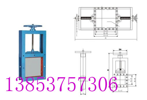 该闸门主要由框架、丝杆螺母、手轮、闸板组成,手轮(链轮)转动,丝杆带动丝杆螺母和闸版作水平方向的往复运动,达到闸门的启闭目。