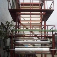 空气压缩机输出的压缩空气、送贮槽经贮槽出口阀门进入模头螺旋芯棒中心孔,模头前装有压力调节伐,按制品大小要求进行调节气量、气压,气体经芯棒中心孔进入泡管状中心,吹胀挤出塑料成泡管形状的薄膜。