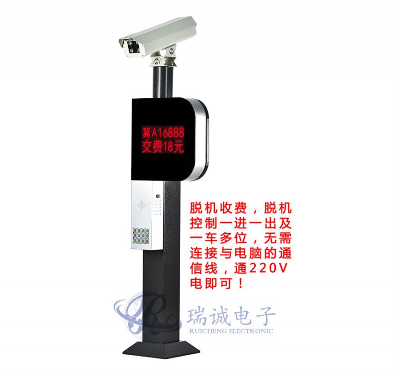 智能P字款车牌识别,脱机收费,脱机控制一进一出及一车多位,无需连接与电脑的通信线,通220V电即可,专利设计,自主研发,无需安装APP即可使用支付宝,微信支付;识别、显示、补光、一体式设计、安装方便。