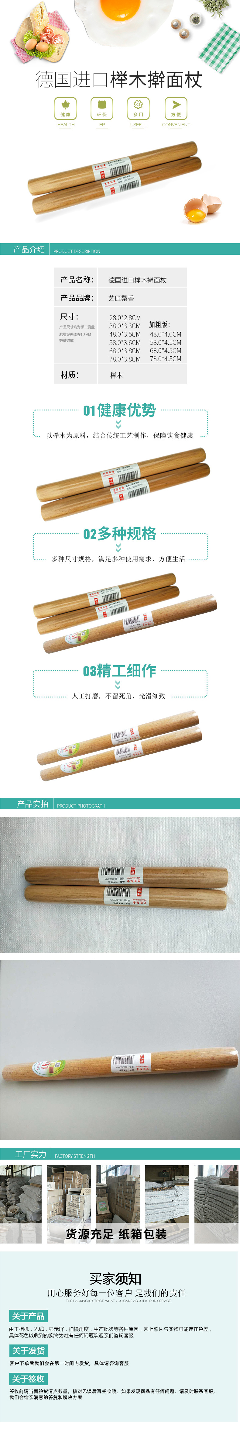 榉木实木擀面杖