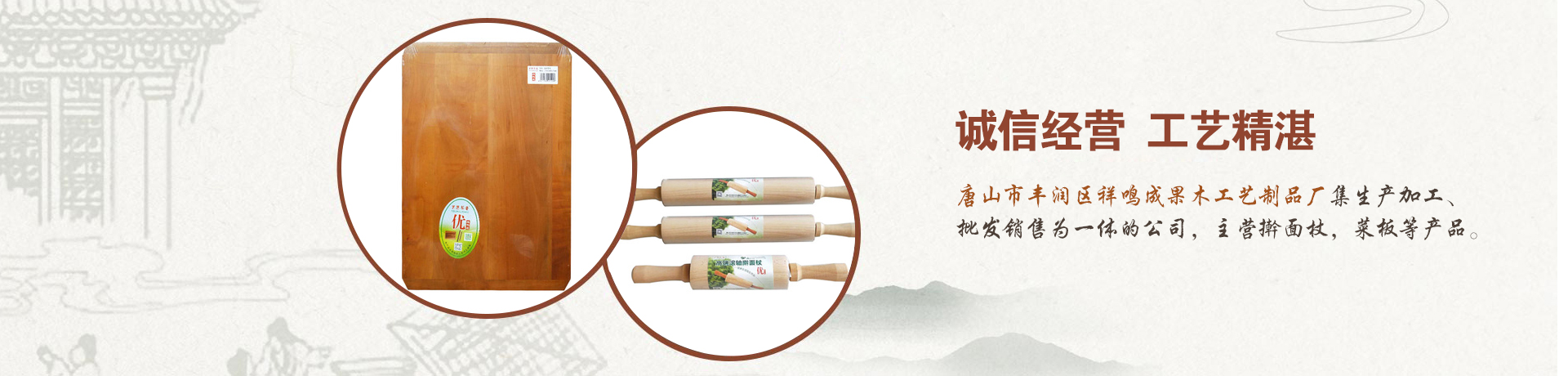 公司介绍+More![]() 唐山市丰润区祥鸣成果木工艺制品厂是一家集生产加工、批发销售为一体的公司,主营擀面杖,菜板等产品。拥有完整、科学的质量管理体系。我厂以雄厚的实力、合理的价格、优良的服务与多家企业建立了长期的合作关系,现面向全国发送产品。我们秉着长远共赢的原则欢迎各界朋友的前来参观、考察、洽谈业务。本厂一直秉着“诚信服务、顾客至上”为原则,全心全意为顾客服务为宗旨,吸引了一大批来自全国各地的代理商。并始终以自产自销的模式,以较低的价格为顾客牟取更大的利益。 [详细介绍] 联系方式+More最新产品公司新闻