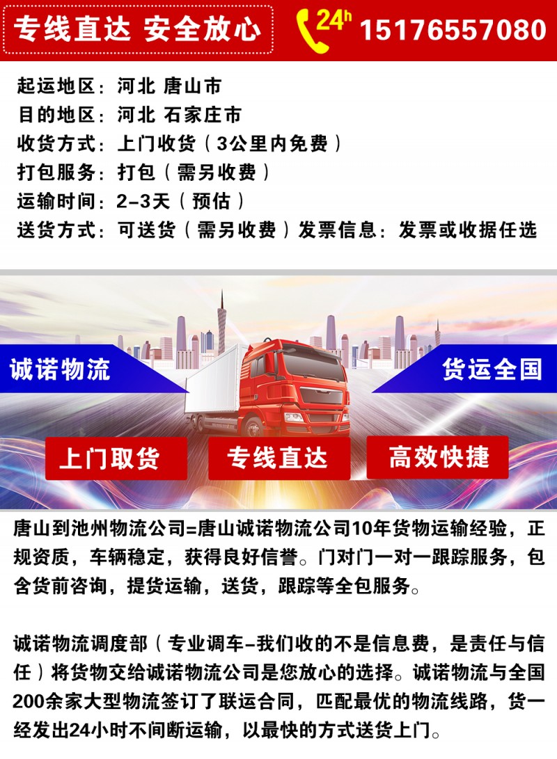关键词:唐山物流公司 唐山物流 唐山货运 唐山至石家庄物流