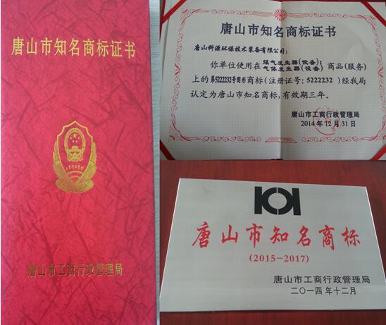 新闻中心 唐山科源环保技术装备有限公司被唐山市工商行政管理局正式认定为“唐山市知名商标”