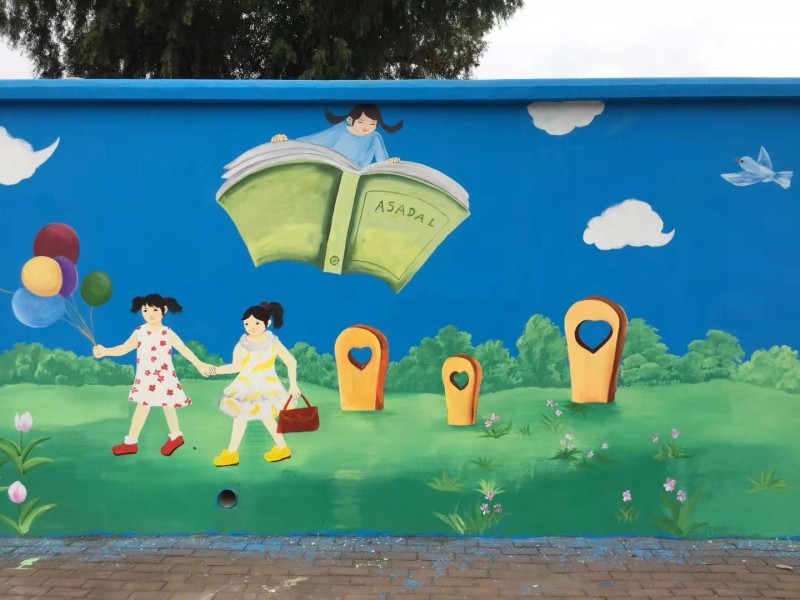 幼儿园墙绘又称幼儿园墙画,是幼儿园室内、外装修墙中用手绘涂鸦表现的最遍及方式。有的幼儿园主管部门明文规定幼儿园必需画卡通图案来作外墙装修。