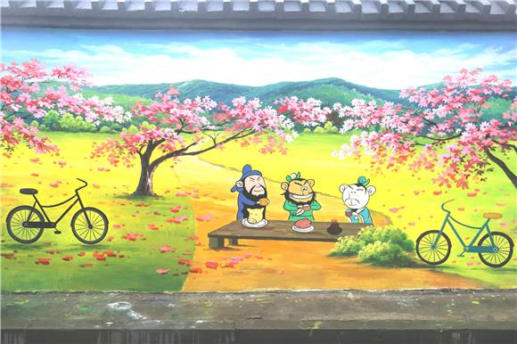 桃园三结义的墙绘。通讯员 涂馨 摄