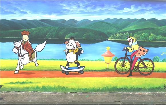 10月18日6时30分讯“看,唐僧师徒几个骑着自行车去取经,好新鲜呀。”昨(17)日,重庆高新区石板镇在石板小学校门口对面打造的总长100米的创意墙绘竣工,为学校乃至整个场镇增加一道共同的风光线,获得了街坊邻居的点赞。