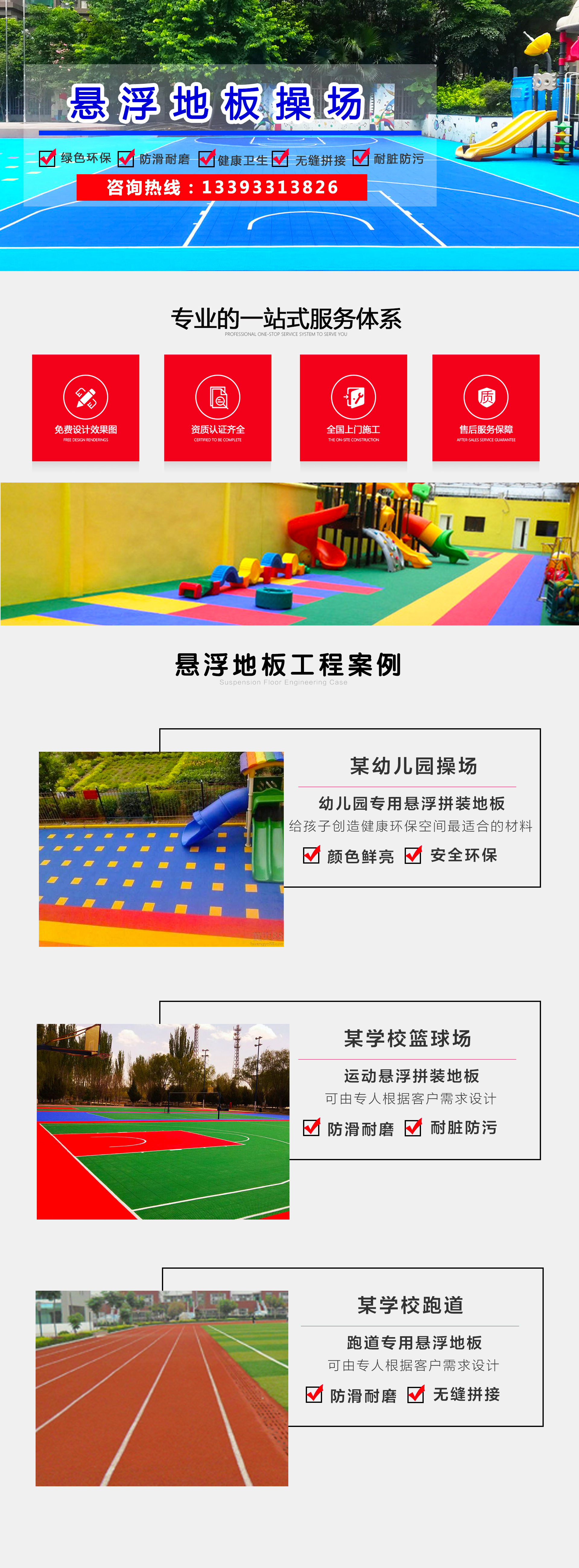 正定县星凯塑料制品厂坐落于河北省会石家庄正定县,是一家集研发、科研、生产、设计、销售、铺装、服务于一体的综合性厂家,为客户提供全系列多花色的拼装地板,可根据客户的特殊需求定做。我厂主营:以悬浮式地板为主的幼儿园地板、跑道地板、操场地板、篮球场地板等产品。我厂生产的悬浮式地板以流平性好、物理性能指标高、环保性强等而着称。 我厂经过几年发展,产品已销往国内各个省市自治区,我们提供多种地材图案及颜色供客户选择,大程度满足客户对地板的个性要求。适用于医院、养老院、学校幼儿园、科研场所、机关办公场所、影剧院、展览馆、写字楼、商场和各类体育健身场馆、场地等地面在建和改造工程。 正定县星凯塑料制品厂生产的悬浮式地板采用全方位的环保材料,具有稳定的物理、化学性能、无毒无味、绿色环保。同时我厂拥有专业的产品安装队伍,完善的施工流程,高超的施工技术,充分保证施工质量和施工效率。售后服务完善,培训拼装地板保养知识和相关的注意事项,让顾客可以更好的使用地板,延长地板的使用寿命。 我们本着“信誉至上、绿色环保”的生产理念和多年...